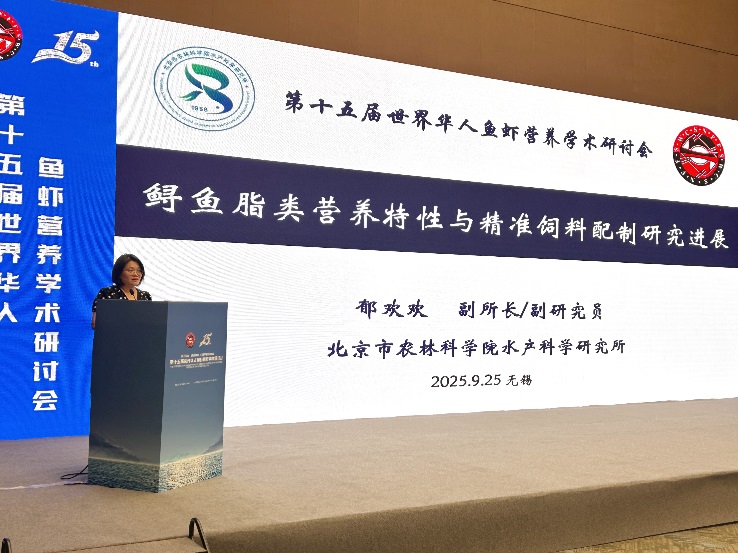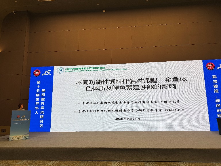 在会上,罗琳研究员和郁欢欢副研究员分别作了题为《不同功能性饲料伴侣对锦鲤、金鱼体色体质及鲟鱼繁殖性能的影响》和《鲟鱼脂类营养我与精准饲料配制研究进展》的口头报告,向与会者分享了团队的研究进展,报告内容得到业界学者、企业代表的高度认可。