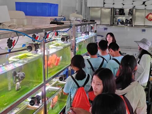 之后,同学们分组参观了水产所鱼类养殖实验室。董颖高级工程师介绍了鲟鱼、斑马鱼养殖实验室自动化养殖及水循环处理设施设备,生动展示了水产科学工作者日常工作的场景。东天助理研究员通过活体展示的方式对比介绍了几个鲟鱼品种及其形态特征。李绘娟助理研究员结合活体展示对金鱼的种类、特征及鉴赏进行了生动地介绍。