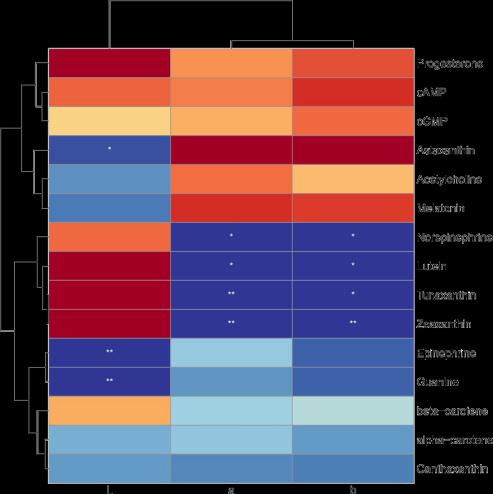 图2 锦鲤体色与色素代谢物相关性热图