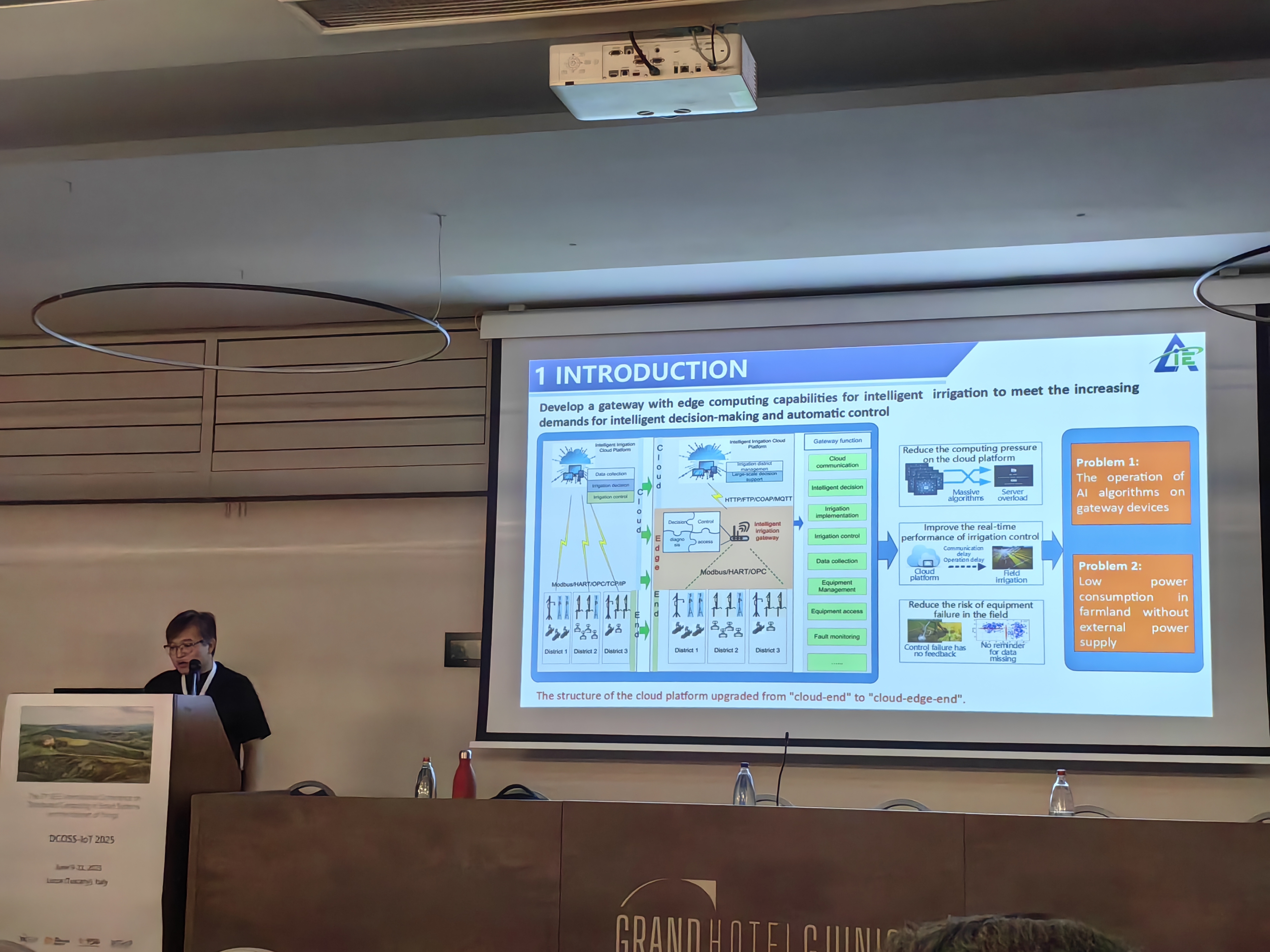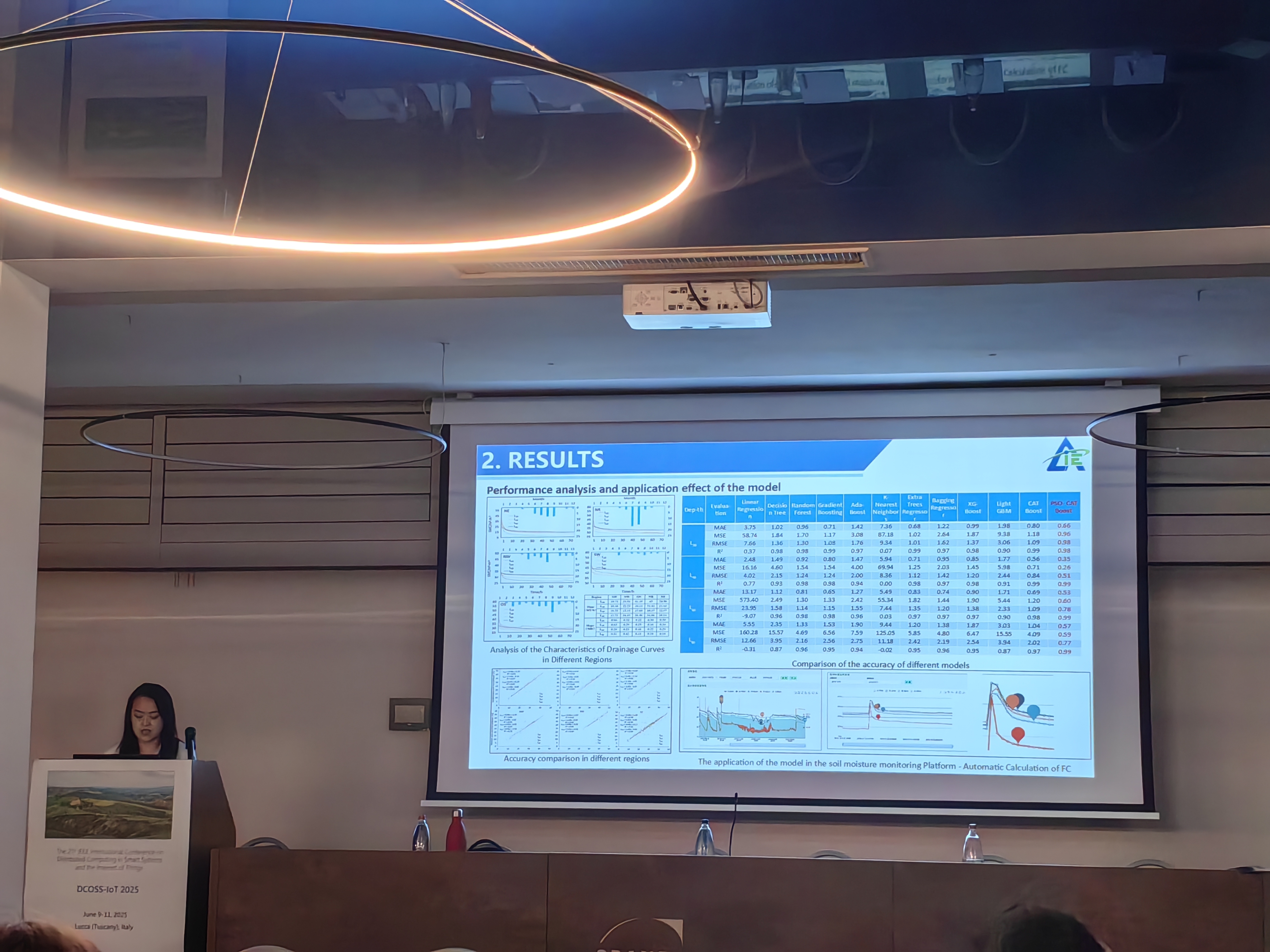 大会聚焦物联网应用、无人机和机器人网络、城市计算、物联网安全与可靠性、分布式计算中的人工智能、循环经济中的信息通信技术、极端环境下的无线通信与网络,以及复杂建模等方向,共有来自意大利、美国、法国、希腊、日本、加拿大、韩国、印度、英国、中国等20几个国家的高校、科研机构和物联网软硬件公司相关人员参加。张石锐副研究员在会上做了题为“Design and Development of Low Power Intelligent Irrigation Gateway Based on Multi- Processor Collaboration”的报告,介绍了由装备中心研发的智慧灌溉网关的研究进展,重点说明了适合农业大田种植应用的低功耗实现方法;单飞飞助理研究员做了题为“PSO-CATBoost Algorithm Based on Soil Sensor Data Driven: Realizing a New Method of in-Situ Estimate of Field Capacity”介绍了中心研究的利用土壤水分监测数据计算田间持水量的智能方法。