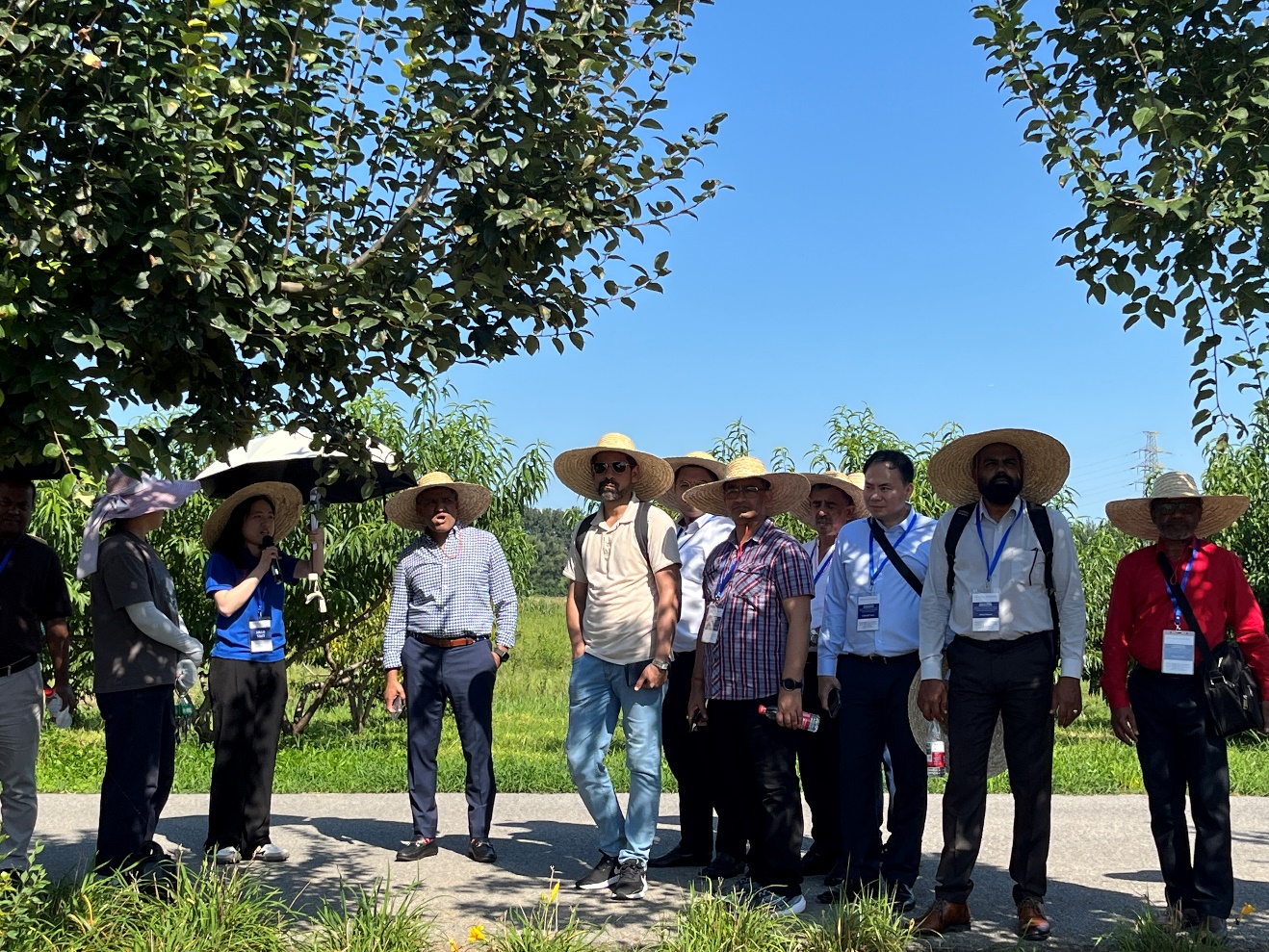 为深化中国与东南亚和南亚的全面战略伙伴关系,共筑全球粮食安全根基,2025年8月25日下午,由中国人民大学国际关系学院组织“全球安全倡议安全治理能力提升研修班”学员42人(来自老挝、柬埔寨及南亚五国)到小汤山国家精准农业研究示范基地参观。