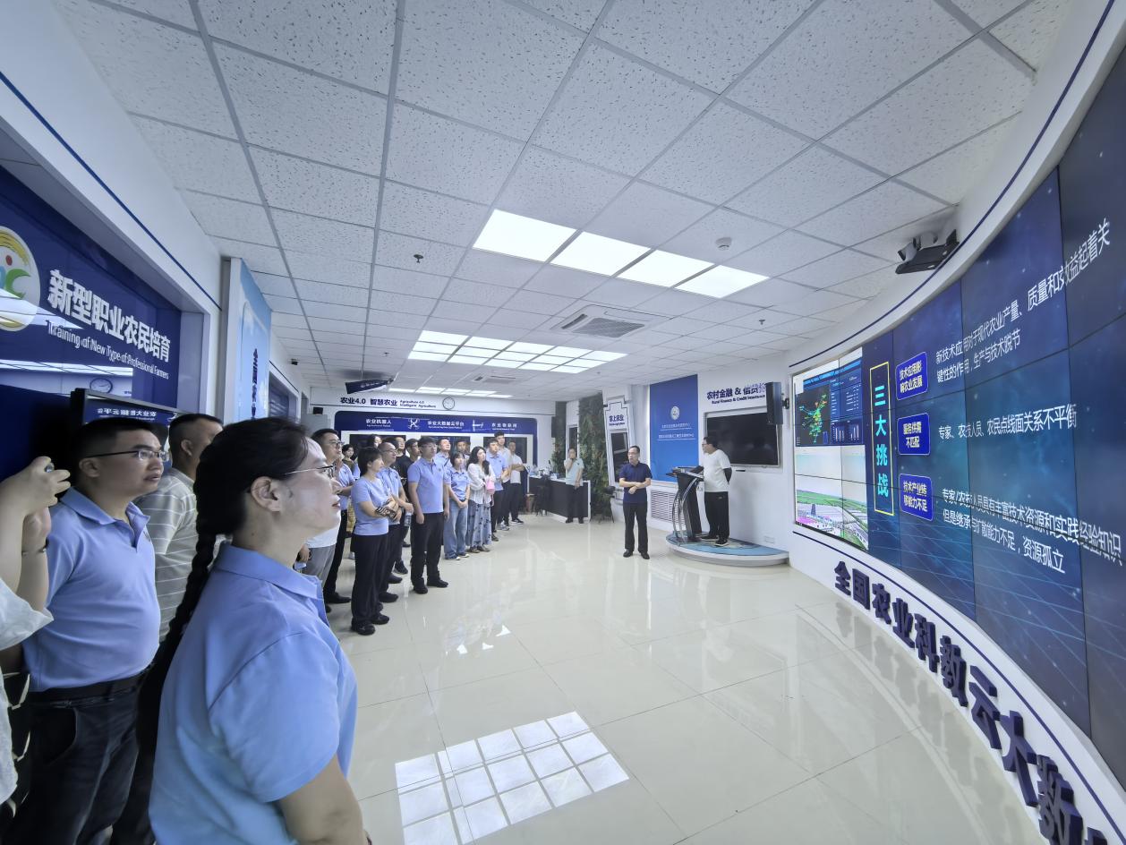 在全国农业科教云平台展厅,朱华吉研究员详细介绍了平台的功能和架构体系,并对系统进行了演示。在农业信息技术与智能装备专题展厅,学员们系统了解了金种子育种云平台、设施农业与智慧节水技术、畜牧装备技术、农田土壤现场快速检测设备、果园多臂采摘机器人、果蔬内外部品质无损检测设备、数字科普互动体验设备等中心自主研发的技术装备及应用模式,对中心的科研领域和取得的突破性成果有了全面地了解。在皇家娱乐城 连栋温室,技术人员重点介绍了中心在作物表型领域的研究与应用,包括植物单株表型高通量采集系统、自走式无人车表型平台、植物表型工厂数字孪生系统等。