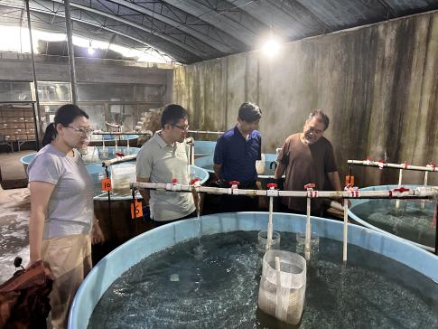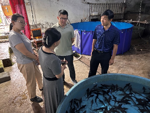 8月8日,北京渔业创新团队、水产所首席科学家朱华一行赴怀柔区综合试验站天源渔港农庄有限公司和鲟鱼繁育岗位示范基地鲟龙种业有限公司(怀柔)、聚盛源渔场(密云)调研灾后鲟鱼苗种生产情况。渔业团队首席办董颖,鲟鱼繁育岗位专家王巍及团队成员白松陪同调研。