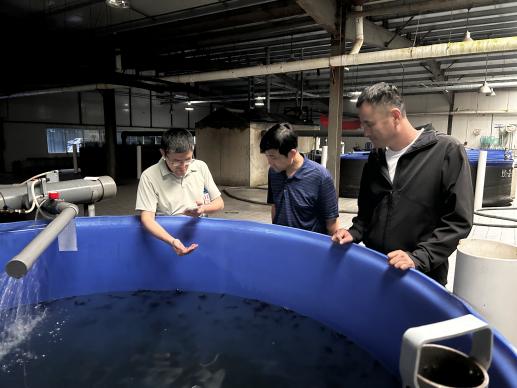 上半年,这三家企业订单式苗种生产已超过2000万尾,同比提升10%以上,产品销往河北、四川、湖南、江西等地。在鲟龙、聚盛源两家繁育示范基地,调研组重点查看了团队攻关的鲟鱼反季节规模化繁育技术成果。由于反季节繁育利润可观且市场需求稳定,调研组建议企业在确保常规生产稳定的基础上,将反季节繁育作为发展重点,进一步扩大产能,提升催产率和受精率。同时,继续与科研团队保持紧密配合,在亲鱼选育、培育和苗种繁育及亲鱼产后护理等环节深化技术应用,不断提高苗种质量和生产效率。通过科研与生产的深度结合,不仅可以帮助企业提升利润,也将促进首都鲟鱼苗种产业整体质量和竞争力的提升。