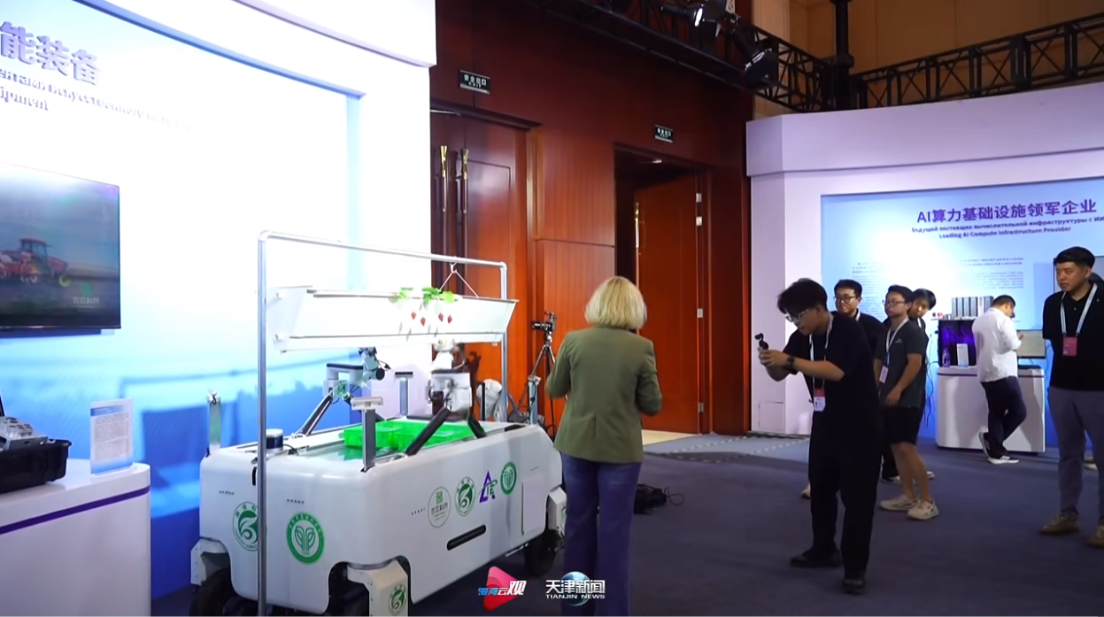农芯科技(天津)有限责任公司应邀参加人工智能企业展区展示。公司科技成果柔采I草莓采摘机器人、四合一高通量三维激光扫描成像表型测量系统、农机北斗自动导航系统代表赵春江院士团队参加成果展览。吴建伟总经理代表团队向中国国家发展和改革委员会党组成员黄如、天津市人民政府党组成员李树起、吉尔吉斯共和国总统办决议执行监督局局长阿扎特·易卜拉伊莫夫、白俄罗斯共和国通信和信息化部副部长塔蒂亚娜·鲁斯克维奇、俄罗斯联邦数字发展 通信和大众传媒部副部长 格里戈里·鲍里先科等中外嘉宾进行详细介绍,并与多家合作意向单位进行交流。相关成果受到中外媒体广泛关注。