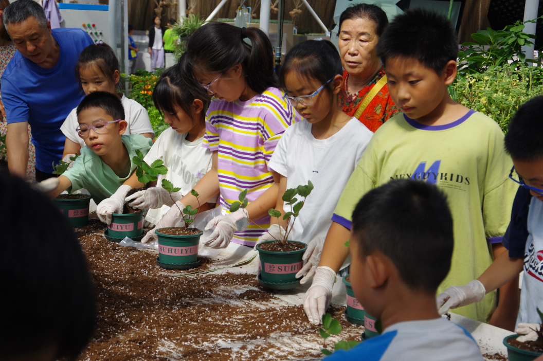 第三场“我来学种植”由营资所王春辉、实验助理张萍两位老师示范草莓定植。拌基质、装盆、定植、压实,在专家老师的指导下,同学们一气呵成,捧着一盆盆嫩绿草莓,同学们满脸骄傲,“带回家观察开花结果”成为共同约定。