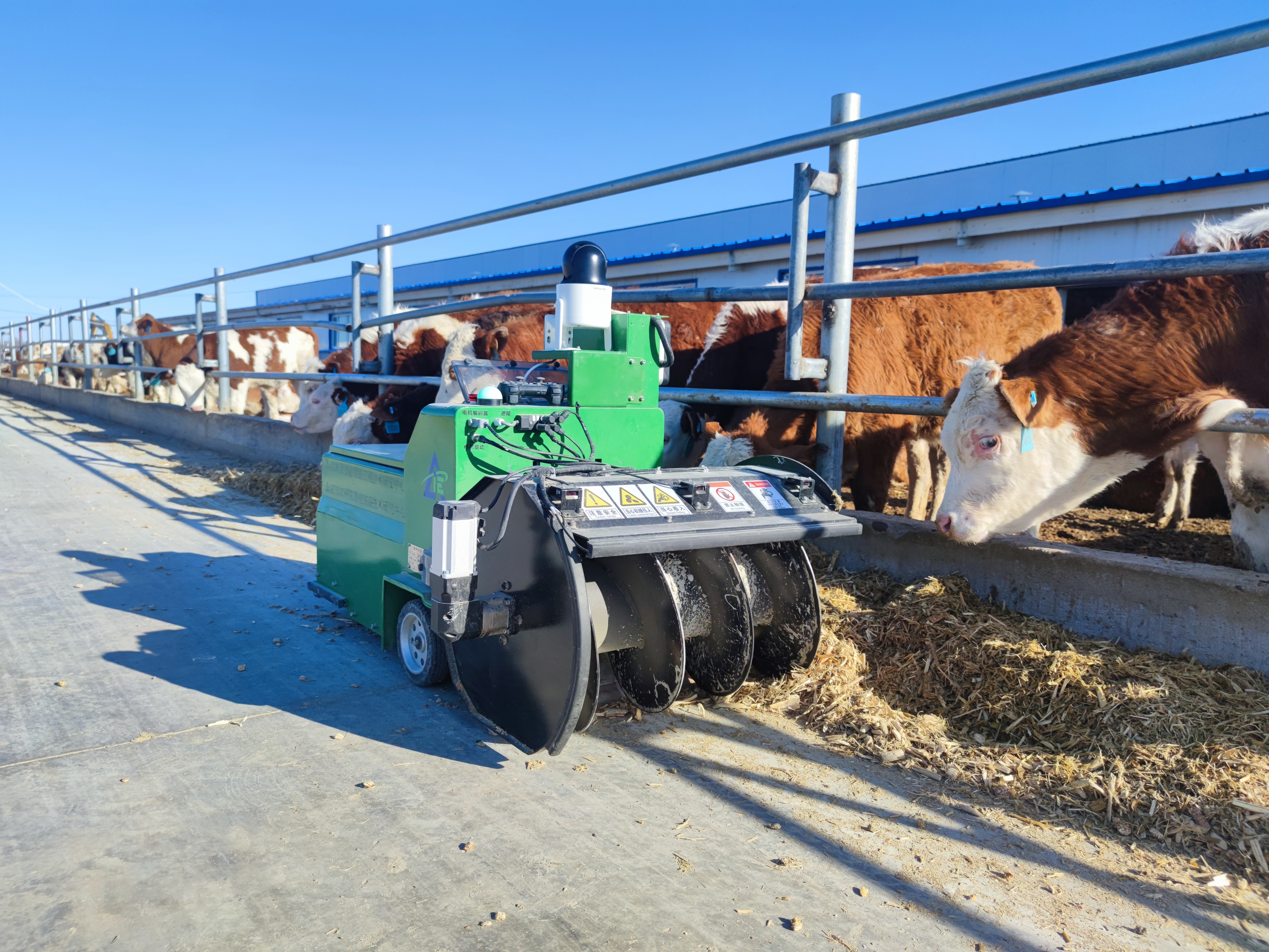 牛舍智能推料机器人特征特性:围绕牛只养殖推料过程中,工人作业时间长、劳动强度大、推料频次不均、人工成本高等问题,... -