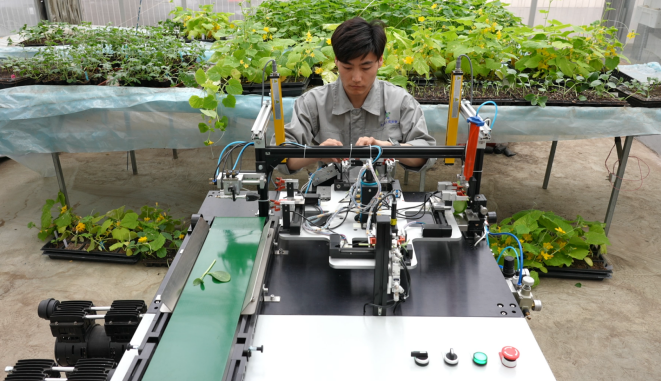 胶接式嫁接机器人特征特性:针对塑料夹固定瓜类嫁接苗易伤苗、回收难度大污染种植环境的问题,开发胶接式嫁接机器人。... -
