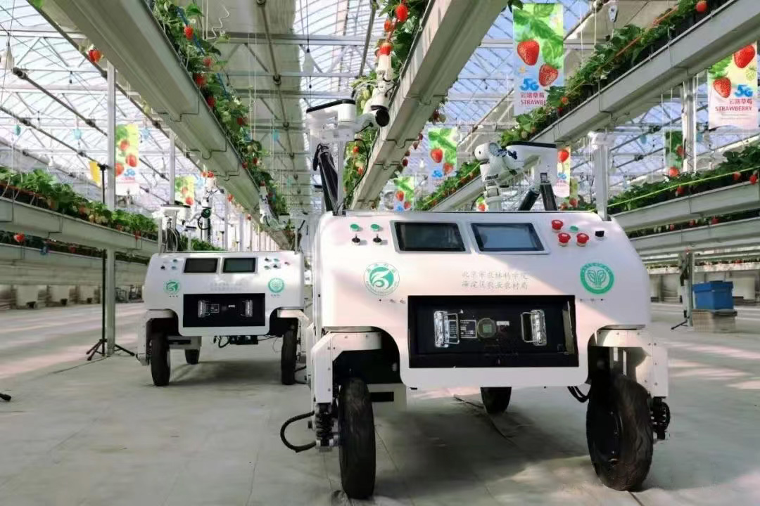 双臂草莓采摘机器人特征特性:全自主研发集采收于一体的“柔采”双臂草莓采摘机器人已实现双臂连续采摘。独创的刚柔耦合... -