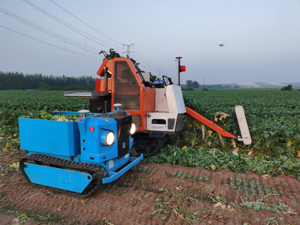 胡萝卜无人联合收获机特征特性:采用无舱、自走高地隙履带式底盘设计,整机由自动限深、振动挖掘、对齐切缨和柔性输送分离... -