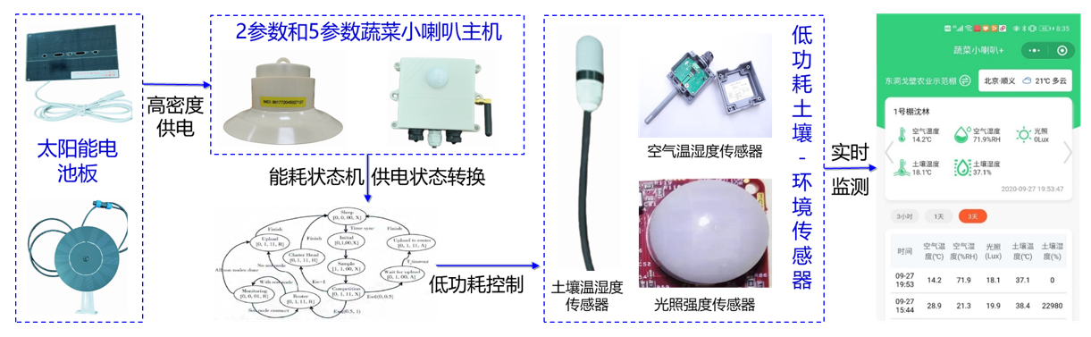 设施蔬菜生长环境主动调控技术主要解决蔬菜生产监测滞后、成本高以及生产管理指导关联性不强等问题。核心配套技术以低成本传感数据为基础的蔬菜环境主动调控技术,包括低能耗传输技术、环境预测预警模型、设施节水决策分析策略等。已推广26个省市主产区,推广面积超36500亩;有效校正大尺度环境预报误差3-4℃,节约用水5.3%,平均提高区域产量7.8%。轻简化-免网免电安装、即插即用;便捷化-小程序看数据、随查随看;智能化-智能模型决策、实时预警。获得河北省农业技术推广一等奖,河北省科学技术进步奖二等奖,天津市科学技术进步奖二等奖,获得吴文俊人工智能科技进步三等奖