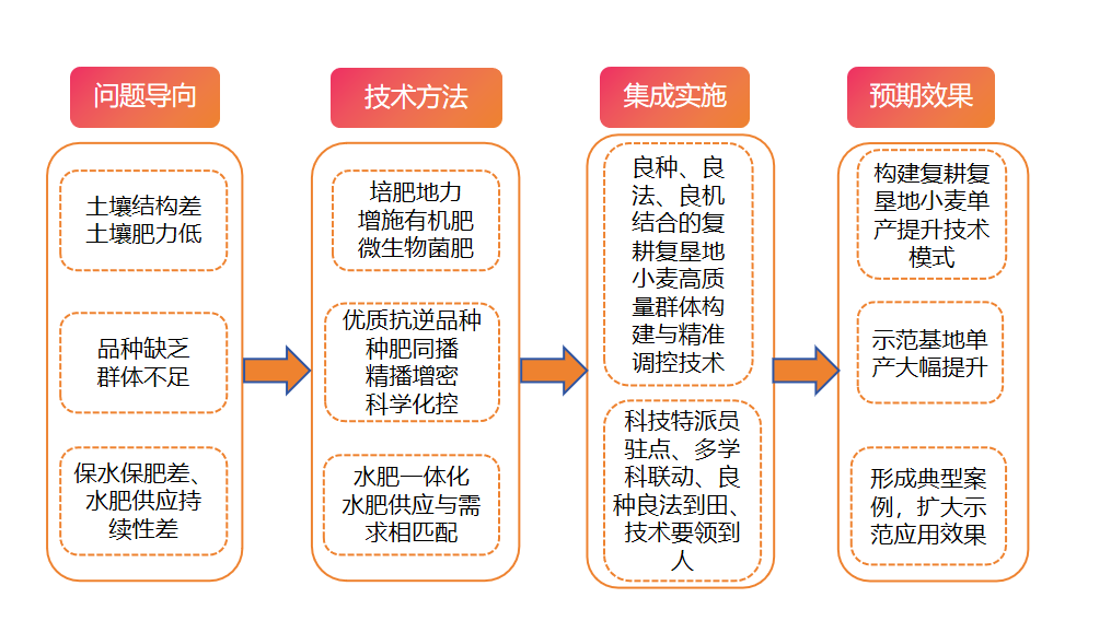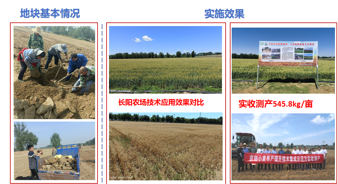 技术简介:针对京郊复耕复垦地及低产田小麦生产现状与产量提升卡点,围绕群体增密和精准调控,开展多项技术集成与应用。
