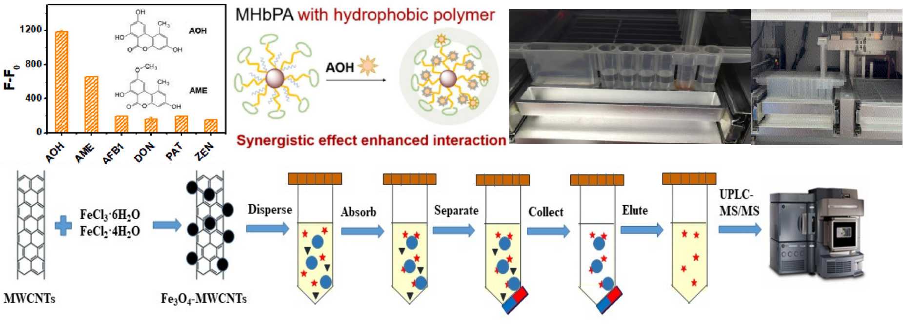 基于磁性功能化纳米材料的磁固相萃取技术特征特性:以核酸适配体和磁性复合纳米材料制备协同增效的净化吸附材料,用于农产品复杂基质中氨基... -