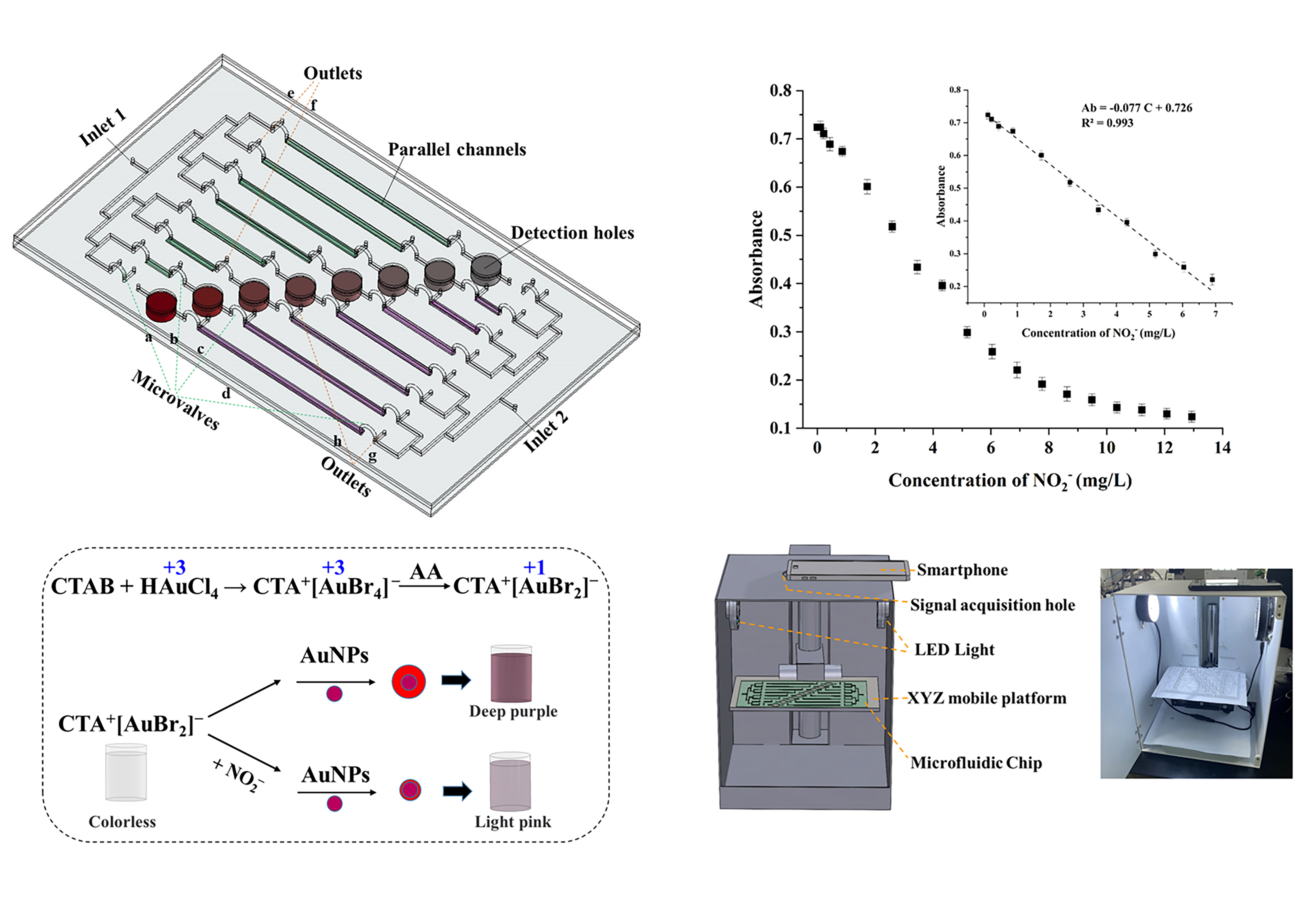 亚硝酸盐微流控浓度梯度比色检测系统该研究成功开发了一种集成化微流控浓度梯度比色系统,巧妙融合微流控芯片、信号采集箱与智能手机AP... -