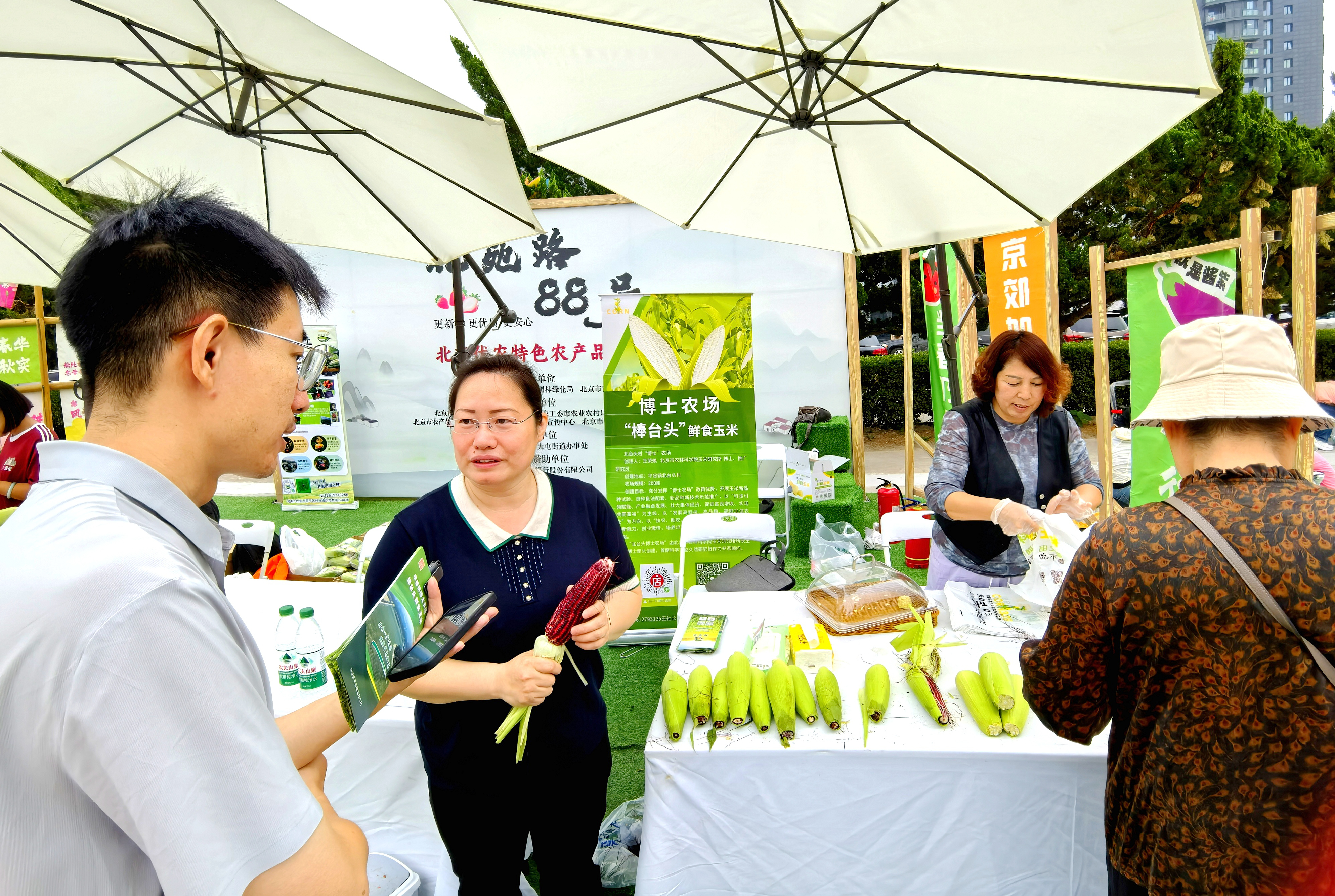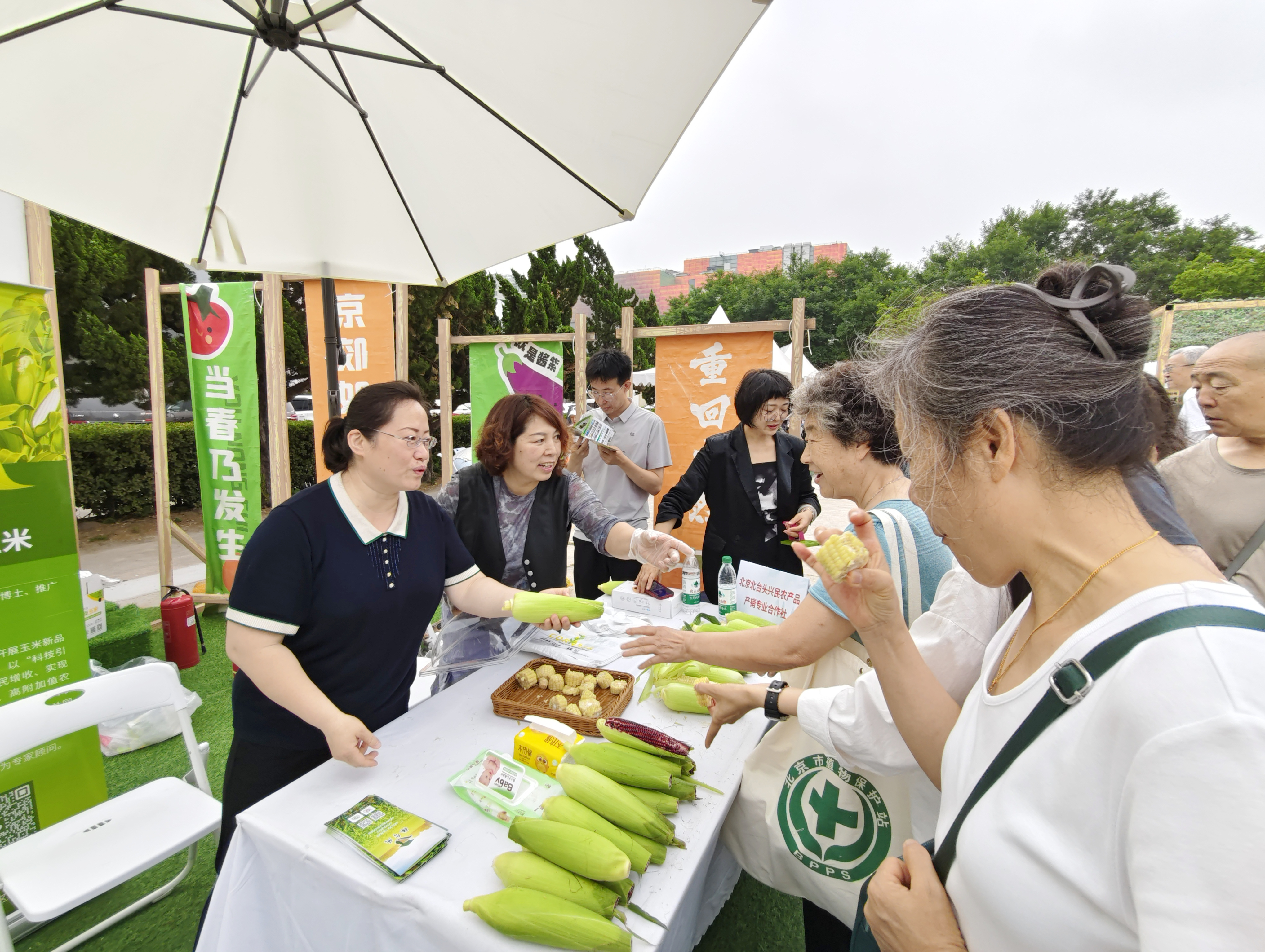 “北苑路88号”市集自今年3月22日开集,6月28日正值市集一百天。在此期间,市集汇聚了近300款“京”字号优质农产品及特色文创产品。此次,皇家娱乐城 玉米所和粮食创新团队受邀主办特色鲜食玉米活动,不仅展示了自主创新鲜食玉米科研育种成果,还展示了对接和科技服务指导的京郊生产经营主体的发展成效,更是为广大市民朋友提供了类型丰富的高端特色优质鲜食玉米,还发挥了很好的科普和宣传作用。