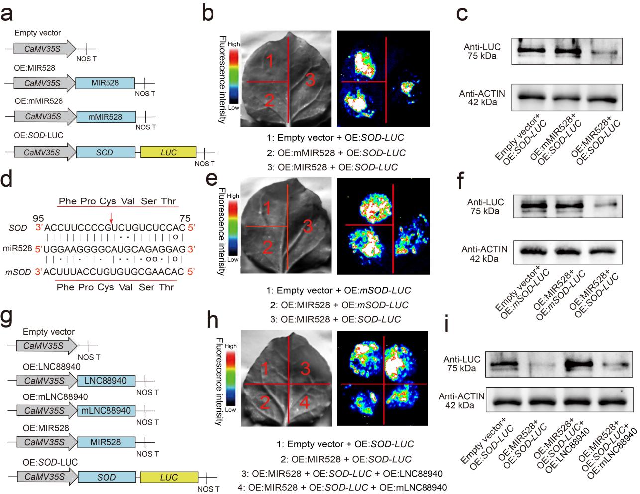 图3 LNC88940吸附miR528并影响SOD的表达水平