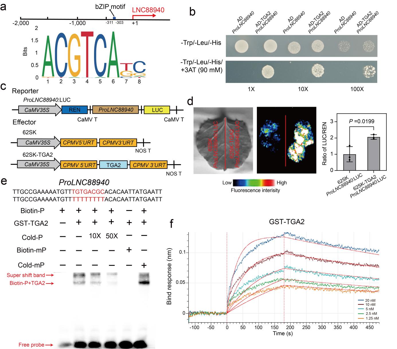 图4 水杨酸响应基因 TGA2促进LNC88940的表达