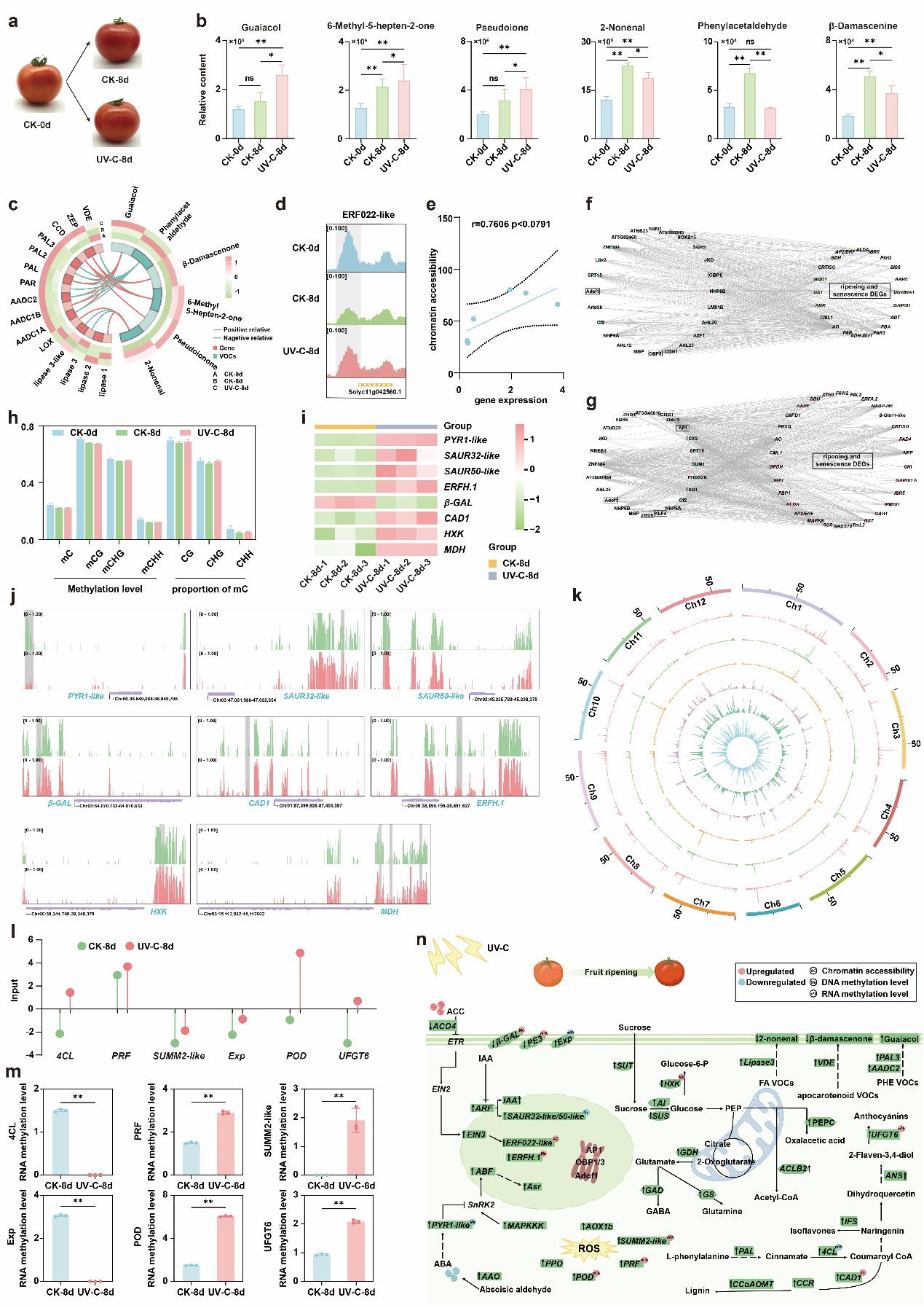 皇家娱乐城 加工所农产品采后生理团队揭示UV-C对番茄果实采后成熟衰老的调控新机制/ 07-10 -