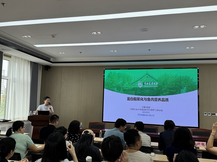水产所还组织召开了学术交流会,唐永凯研究员做了《建鲤2号选育和健康养殖》报告,介绍了选育过程、品种特点和示范推广情况及下一步育种目标已经开展的工作;贾智英研究员做《鲤新品种培育》报告,讲解了鲤产业情况和鲤新品种“龙科11号”、“龙科12号”、“易捕鲤”的培育过程、性能优点和示范转化情况;洪惠教授做了《蛋白脂氧化和鱼肉营养品质》的报告,详细讲解了鱼肉中的蛋白脂氧化对其营养品质的影响,指出蛋白脂氧化是导致鱼肉营养品质下降的重要因素,降低了肌原纤维蛋白的肠道吸收效率提高细胞的炎症水平。水产所约30余人听取了报告,并同专家进行充分交流,现场气氛热烈,此次学术交流获得了与会人员的高度认可。