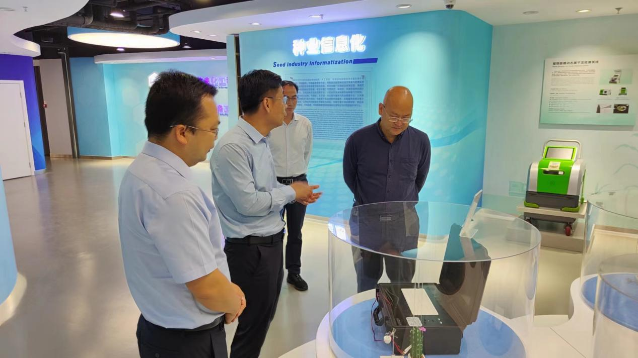 交流期间,穆贤清书记一行参观了农业信息技术与智能装备技术专题展厅,重点了解了信息中心和装备中心在种业信息化、畜牧信息化、智慧灌溉、科普互动以及智能作业装备方面的相关成果。座谈期间,穆贤清书记就马山县制种产业数字化提升、蓝莓机械化采摘、黑山羊品种溯源、品牌展示等提出了建设需求。赵春江院士为马山县制种产业的发展提出了相关建议,立足信息中心和装备中心科研优势与马山县进行强强联合,以优势的技术为马山县制种产业服务。吴建伟副主任就马山县申报数字种业创新基地、制种大县提供了相关的建议和合作方向指导。双方就双方的后续合作方向进行了充分探讨和交流。