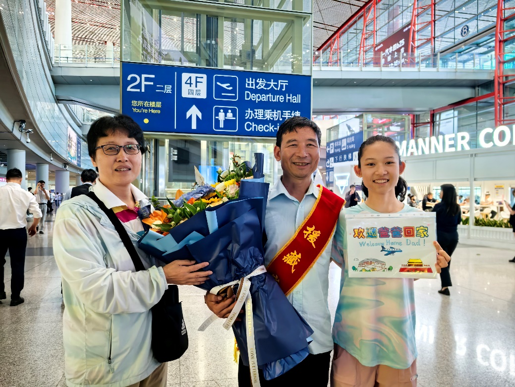 在接机现场,张军科所长代表全体干部职工向王尚德同志献上鲜花,热烈欢迎王尚德同志回归,并对王尚德和家属给予感谢和慰问。王尚德同志的家人也一同前往迎接,他与爱人、孩子怀抱鲜花、欢呼雀跃地在接机口全家团聚的感人场景,为这援藏凯旋时刻增添了浓浓的亲情暖意。