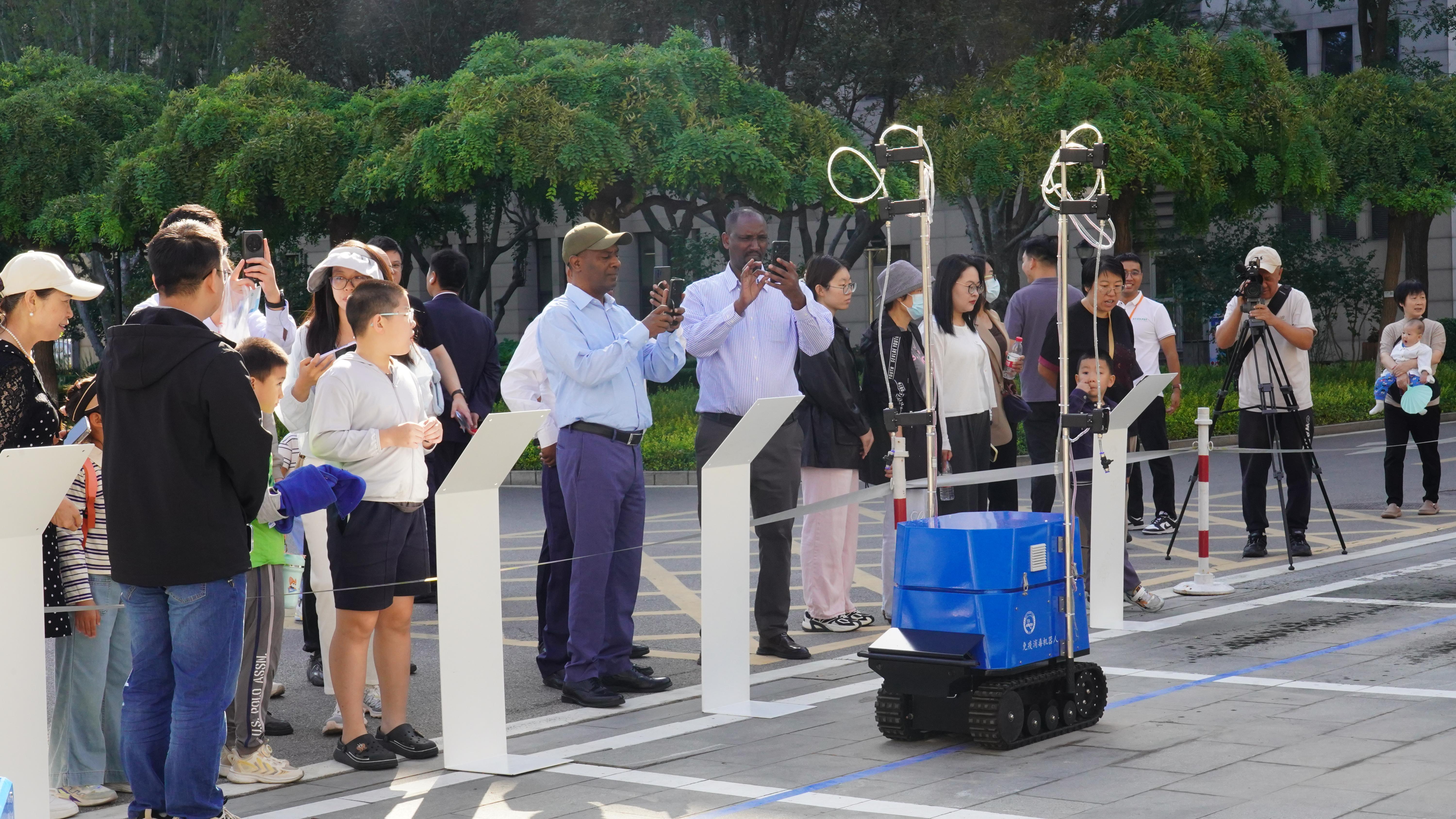 步入“农科开放日”入口,只见“农科小智”机器人主动为公众引路,精准解答各类农业问题,成为活动“智能向导”。互动体验区,农作物表型机器人、苹果采摘机器人、草莓采摘机器人、温室巡检机器人等“农业智慧助手”齐聚一堂,带领公众沉浸式走进“未来农场”。