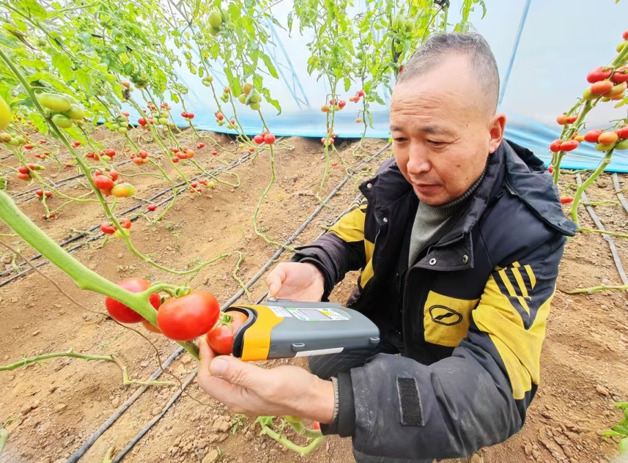 市级口感西红柿产业集群专家团队成员、北京市农业技术推广站蔬菜科专家李蔚介绍,团队根据合作社的实际需求,引进新型功能农膜、纳米气泡棚膜产品,搭建卷被自动监控系统,应用智能诱捕器+智能孢子捕捉仪开展智能化病虫监测实现精准化施药,开发应用便携式番茄糖度无损检测设备,实现精准分选分级,团队全产业链助力口感西红柿产品提质增效。