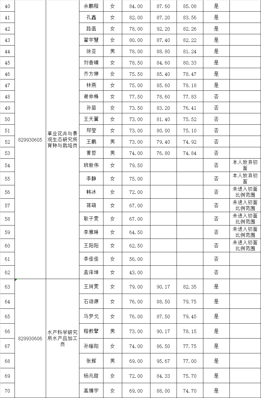 初试成绩公布及资格复审通知