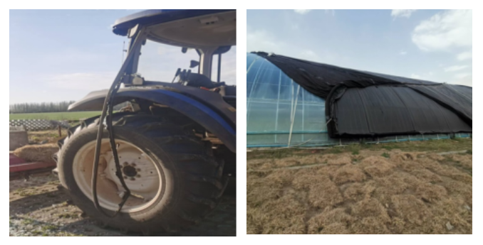草花所处置险情,针对小汤山基地出现的大棚棉被被风吹起和拖拉机驾驶舱玻璃破损的情况,迅速组织安排人员进行加固和维修工作。