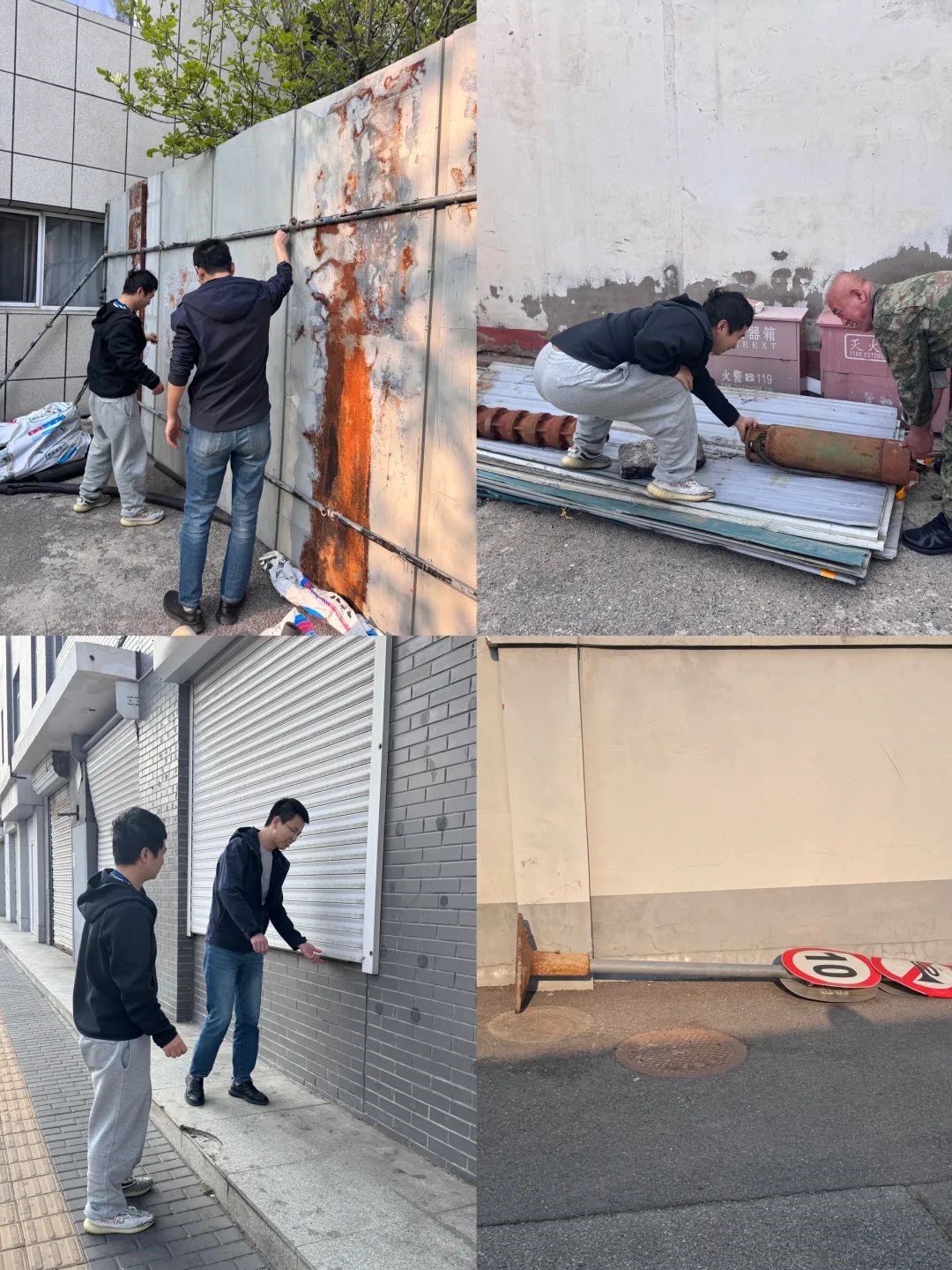 畜牧所,对高室、西院、东院三个院区全面开展安全隐患排查及应急提醒工作;启动极端天气应急预案,明确职责分工,所领导带队对围挡、户外广告牌、卷帘门临时搭建物等进行拉网式巡查,及时消除隐患。