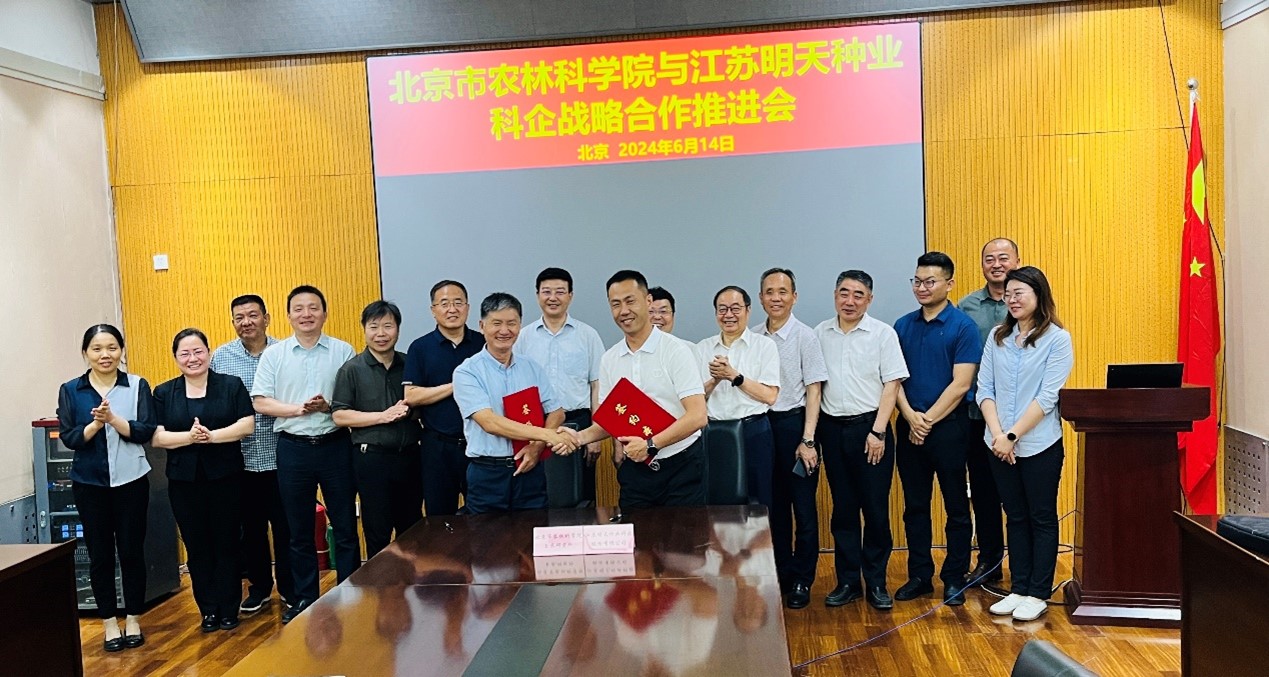 会前,院党组副书记、院长燕继晔与会并表示:希望通过与江苏明天种业实施深度战略合作,进一步加快皇家娱乐城 科研育种创新成果转化,共同助力我国种业振兴和现代农业产业发展。