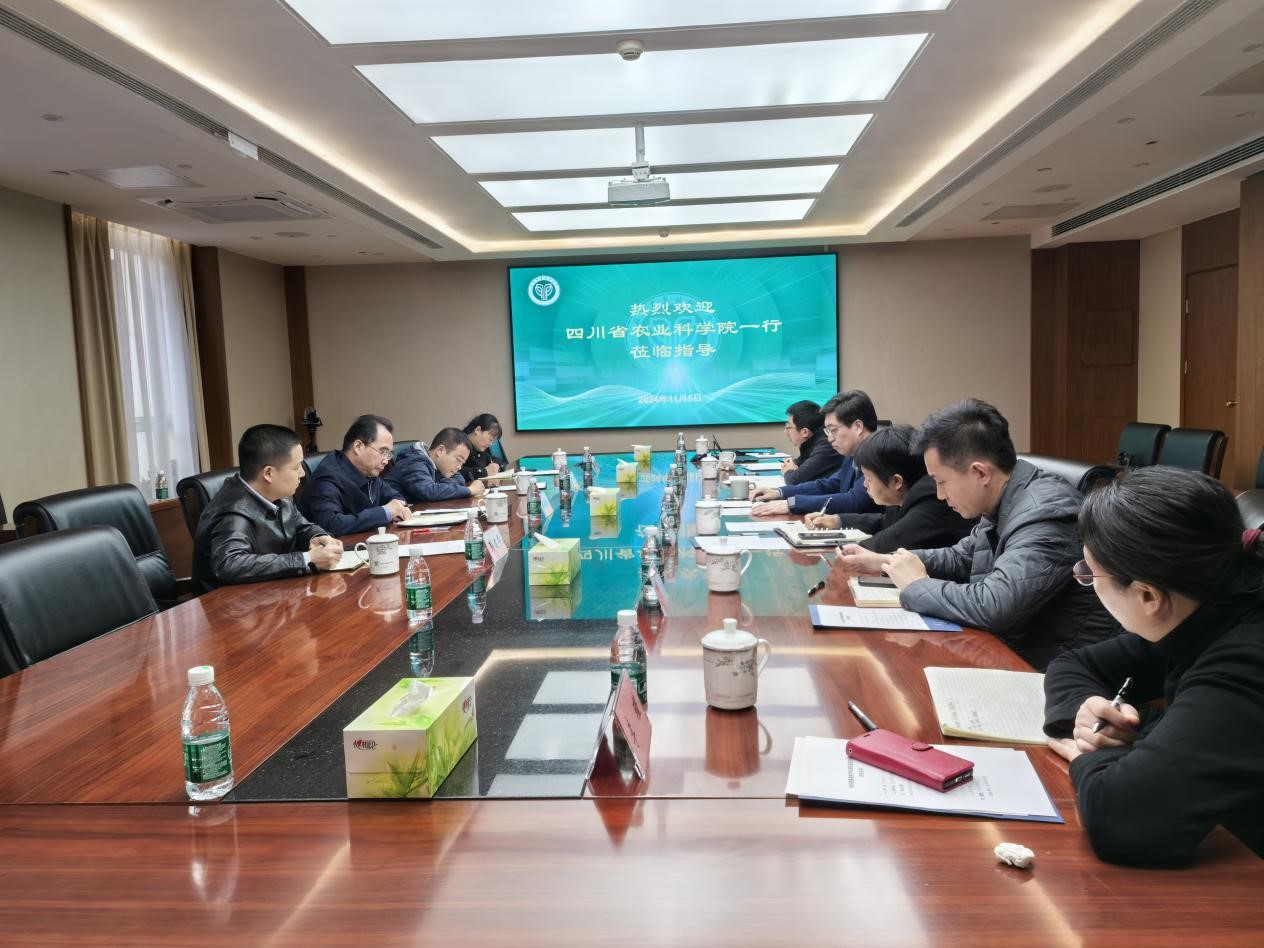 近日,四川省农业科学院党委书记、院长牟锦毅一行4人到皇家娱乐城 对农业科技创新与成果转化进行交流。党组副书记、院长燕继晔,党组成员、副院长张峻峰出席座谈会,院科研处、成果转化与推广处、信息中心等部门负责同志参加。